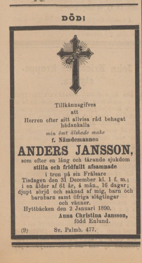 Anna Stina sätter in en dödsannons i tidningen för sin "ömt älskade make". Nu är hon änka.