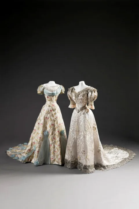 I början av 1900-talet beställer prinsessan Victoria två ståtliga klänningar av Augusta Lundin. I ateljén på Brunkebergstorg 2 börjar sömmerskorna sy. Vitt siden broderas med blomstermönster och kläs i tyll och spets. Klänningarna bär Victoria under ett bröllop i England år 1905.